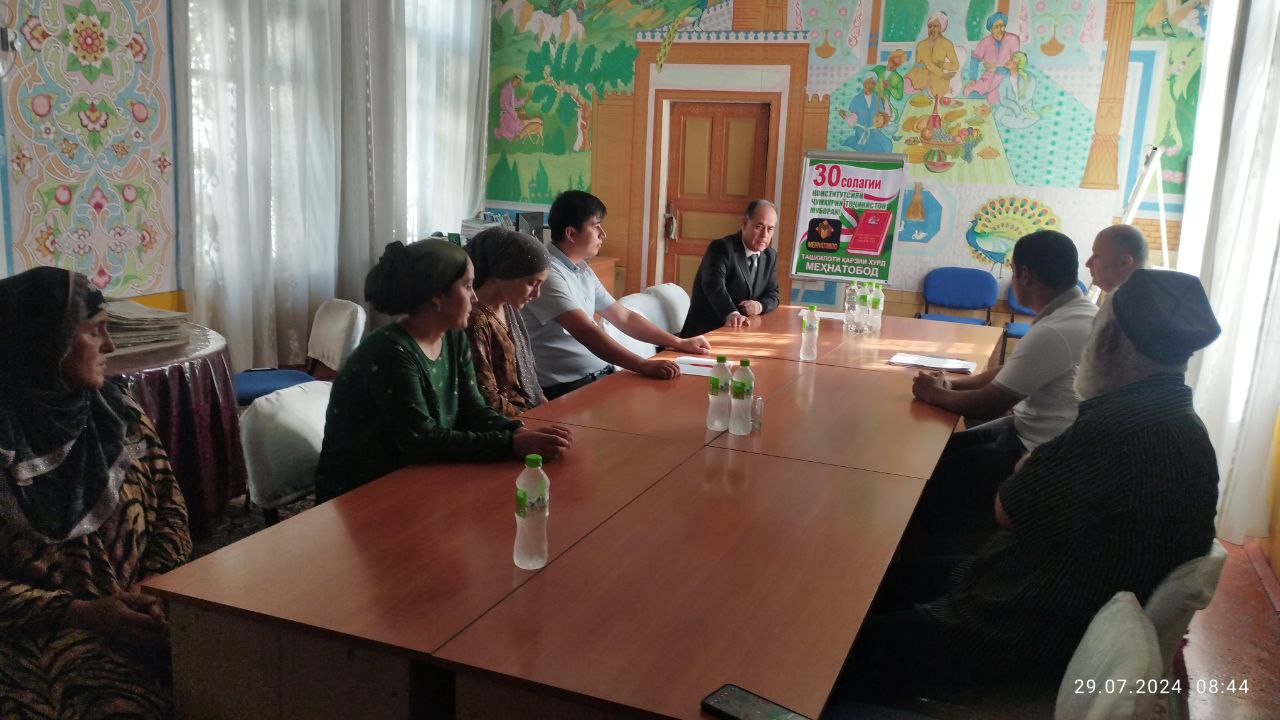 Бахшида ба 30 – солагии Конститутсияи Чумхурии Точикистон ва соли 2024 дар мамлакат ” Соли маърифати хукуки” эълон гардидан ЧДММ ТКХ ” Мехнатобод” бо хамрохии кормандони Суди иктисодии вилояти семинар машварат гузаронида шуд.